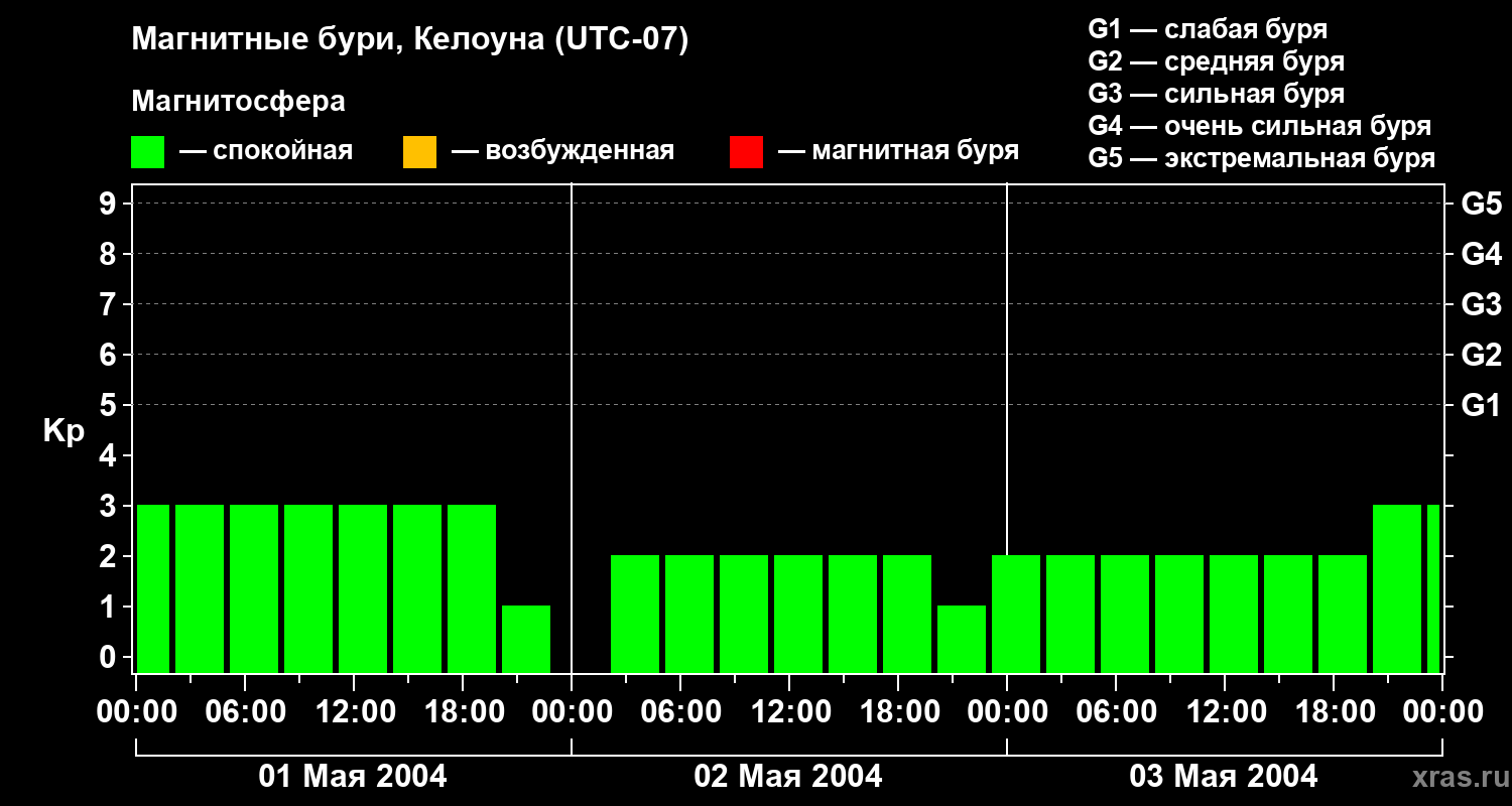 Магнитные бури в Келоуне — 3 мая 2004 года