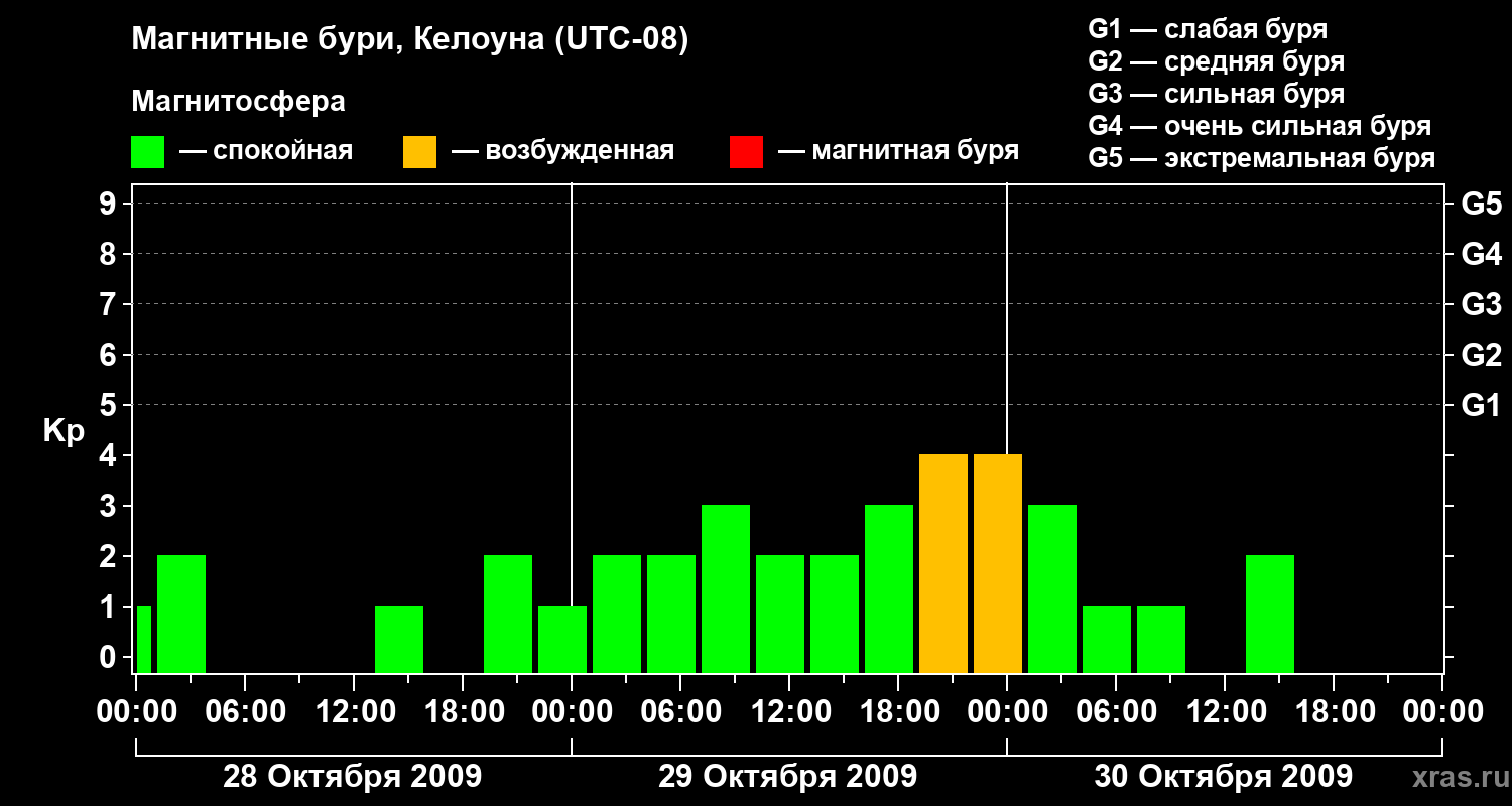 Магнитные бури в Келоуне — 30 октября 2009 года