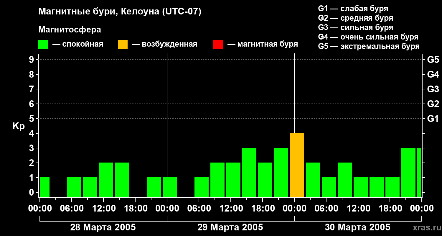 Магнитные бури в Келоуне — 30 марта 2005 года