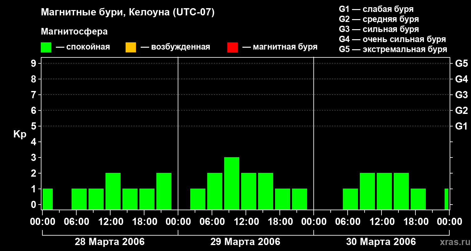 Магнитные бури в Келоуне — 30 марта 2006 года