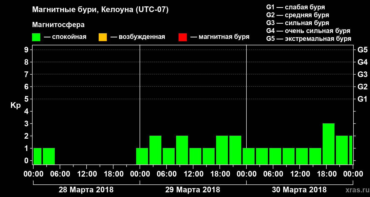 Магнитные бури в Келоуне — 30 марта 2018 года