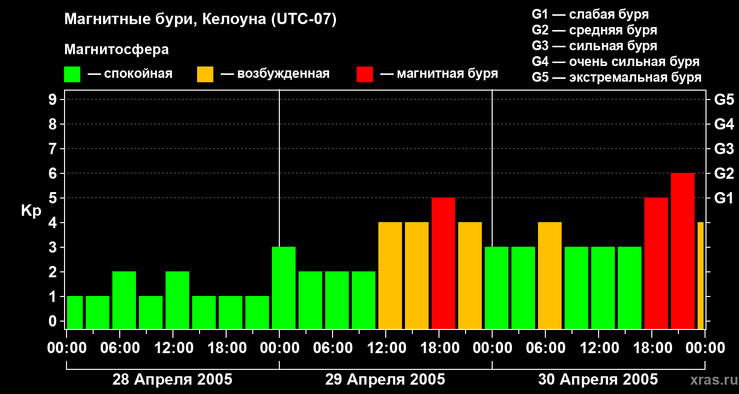 Магнитные бури в Келоуне — 30 апреля 2005 года