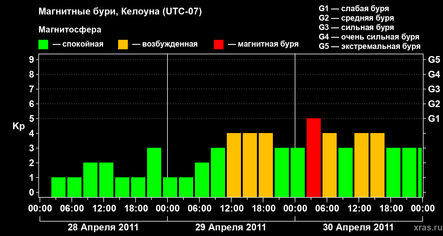 Магнитные бури в Келоуне — 30 апреля 2011 года
