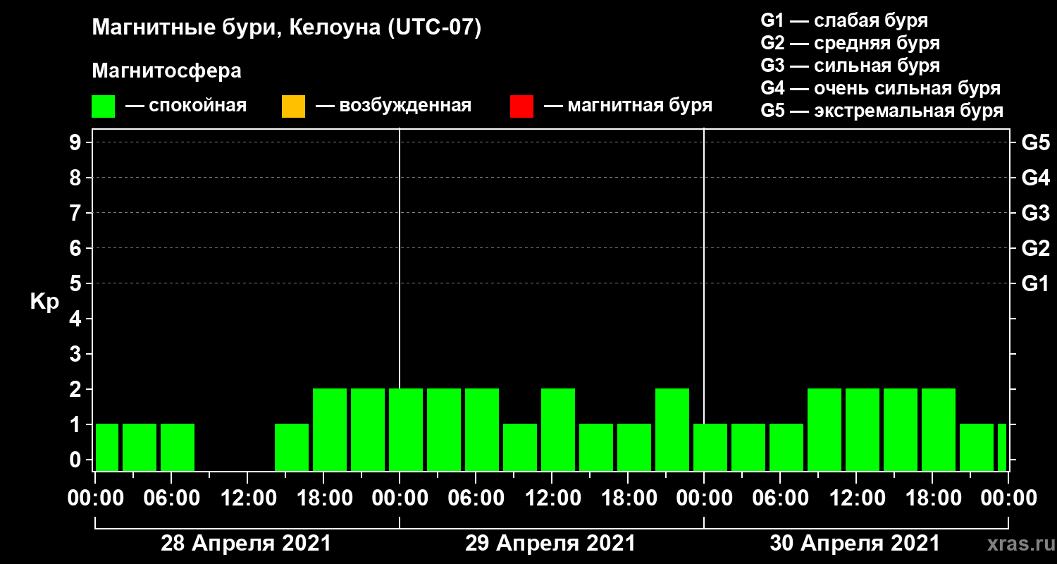 Магнитные бури в Келоуне 30 апреля 2021 года