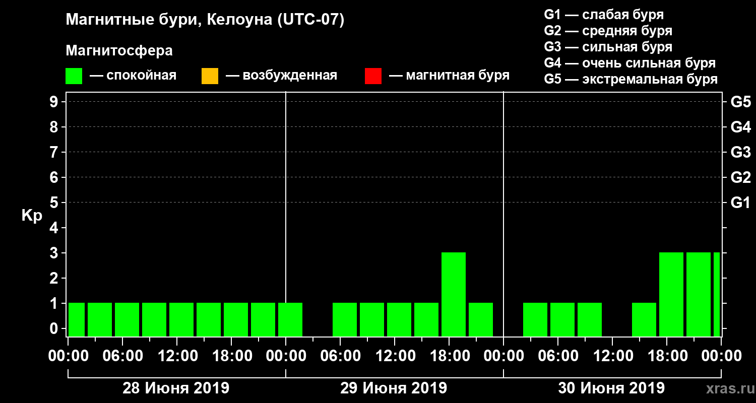 Магнитные бури в Келоуне — 30 июня 2019 года