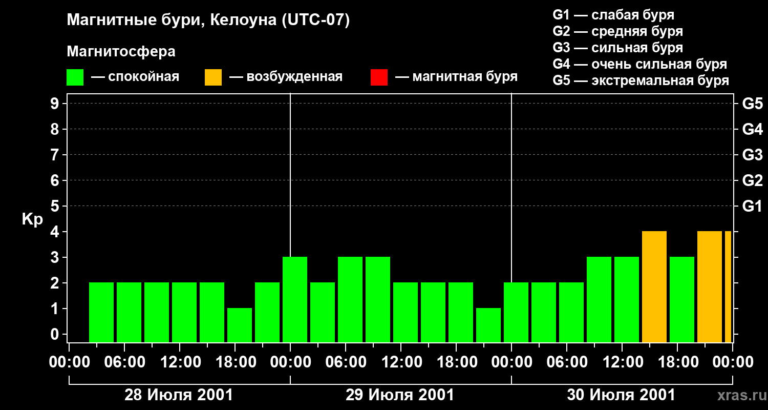 Магнитные бури в Келоуне — 30 июля 2001 года