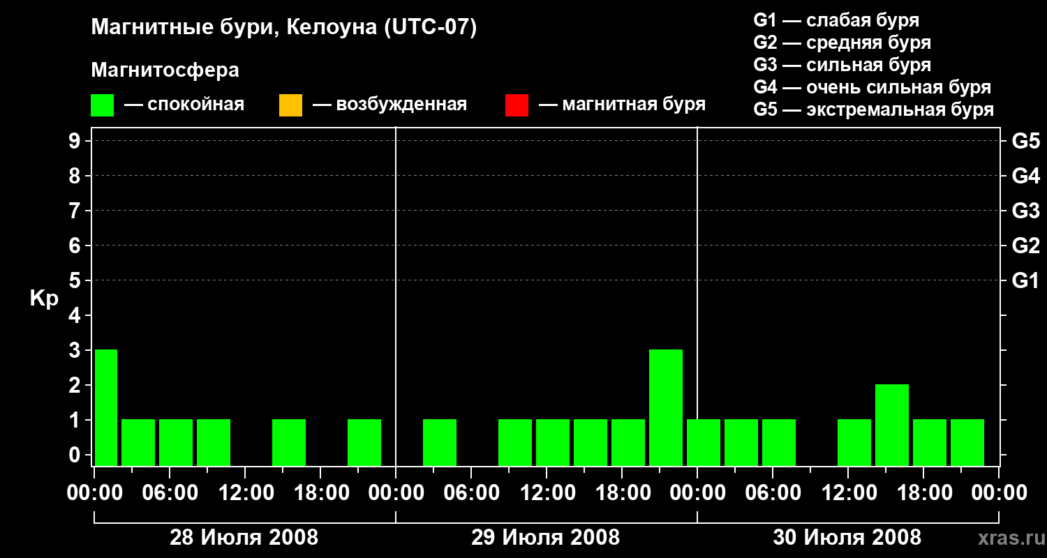 Магнитные бури в Келоуне — 30 июля 2008 года