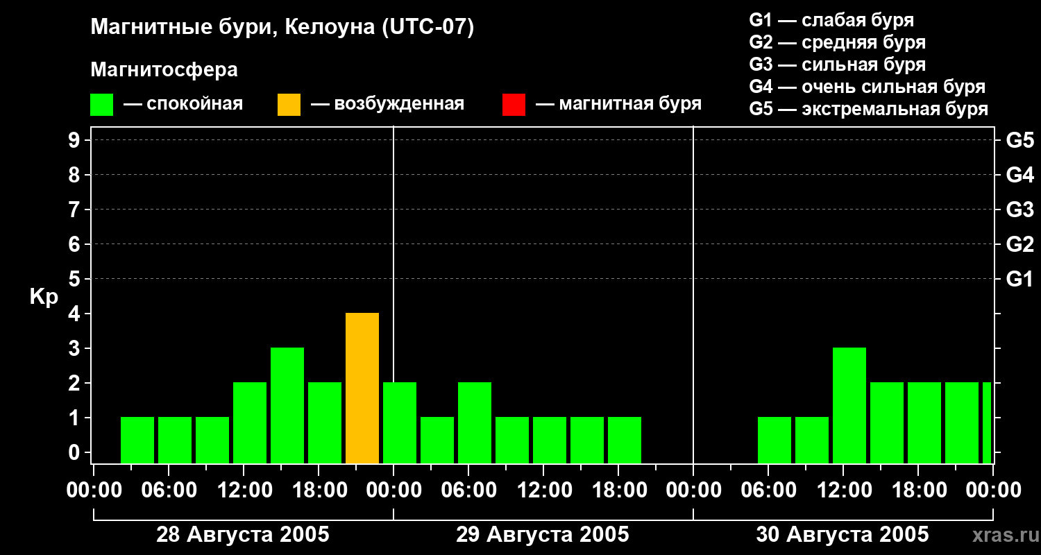 Магнитные бури в Келоуне — 30 августа 2005 года