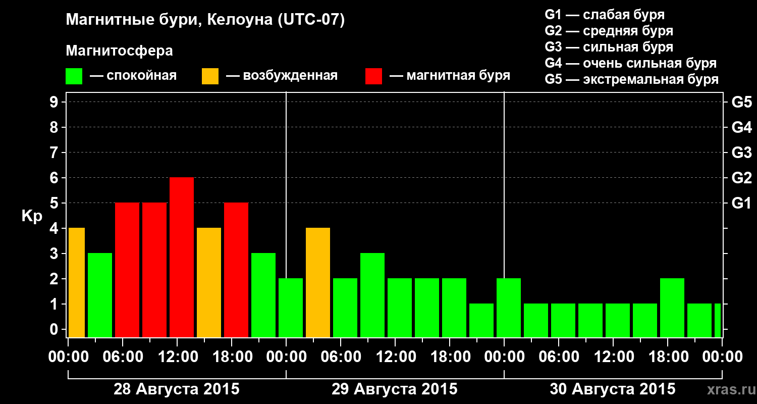 Магнитные бури в Келоуне — 30 августа 2015 года