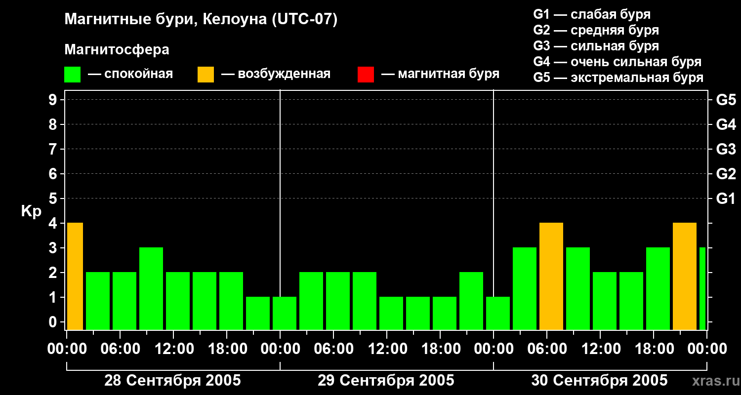 Магнитные бури в Келоуне — 30 сентября 2005 года