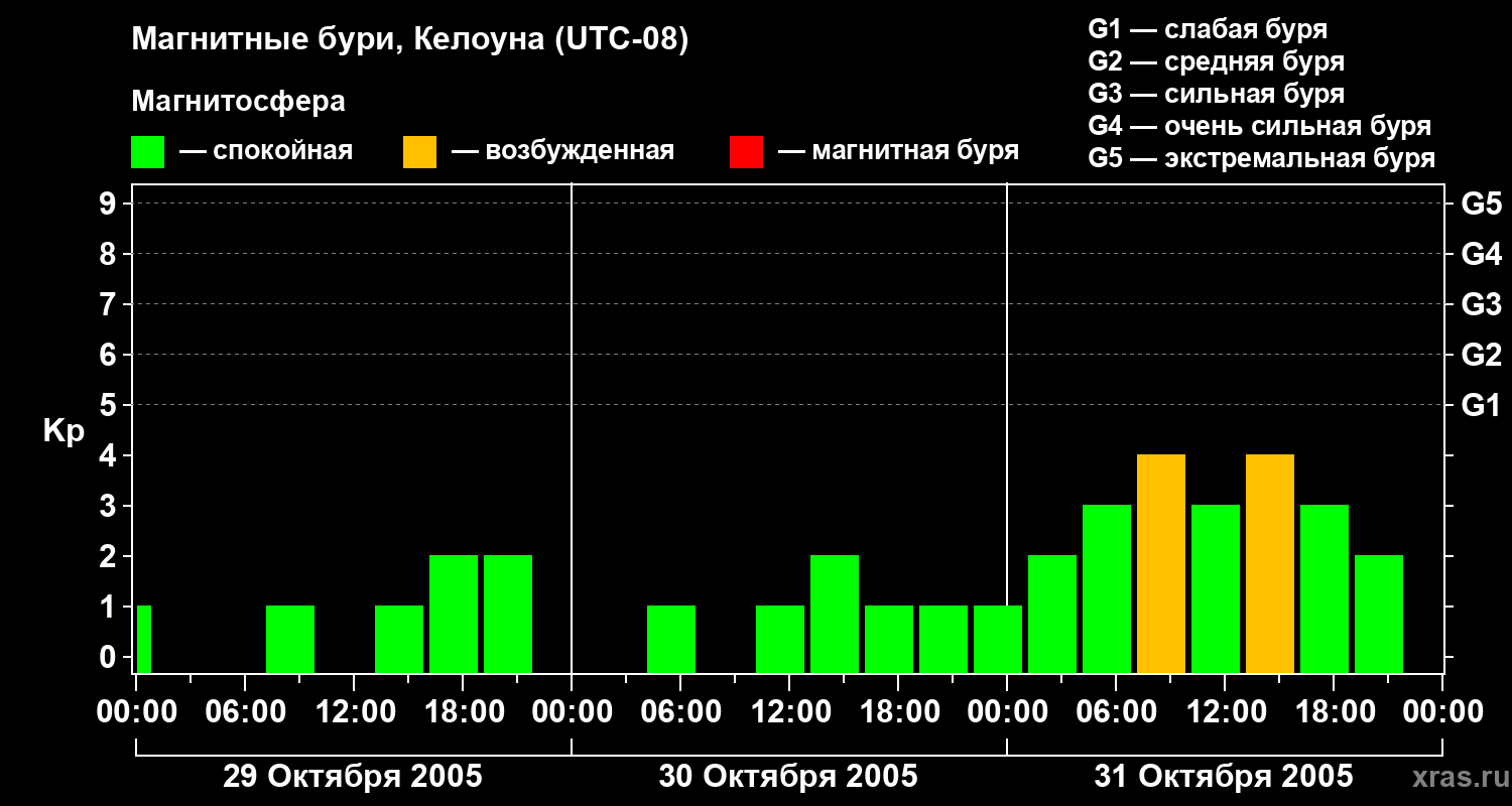 Магнитные бури в Келоуне — 31 октября 2005 года