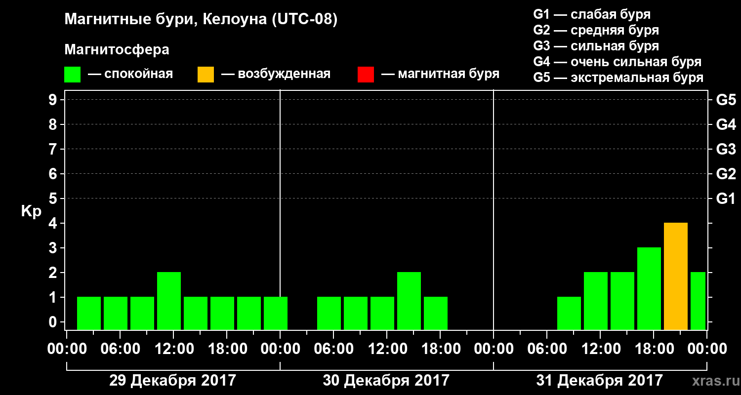 Магнитные бури в Келоуне 31 декабря 2017 года