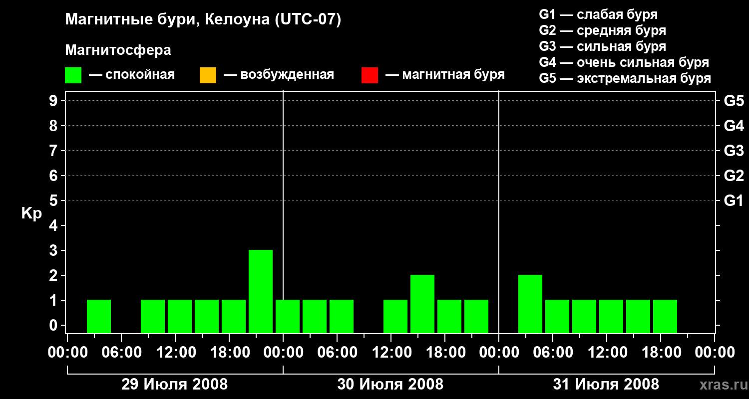 Магнитные бури в Келоуне — 31 июля 2008 года