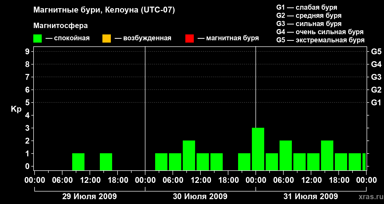 Магнитные бури в Келоуне — 31 июля 2009 года