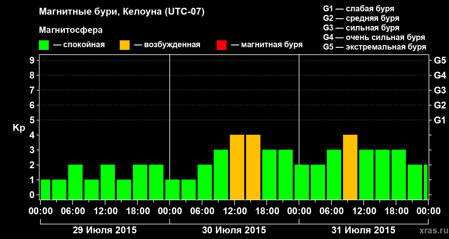 Магнитные бури в Келоуне — 31 июля 2015 года