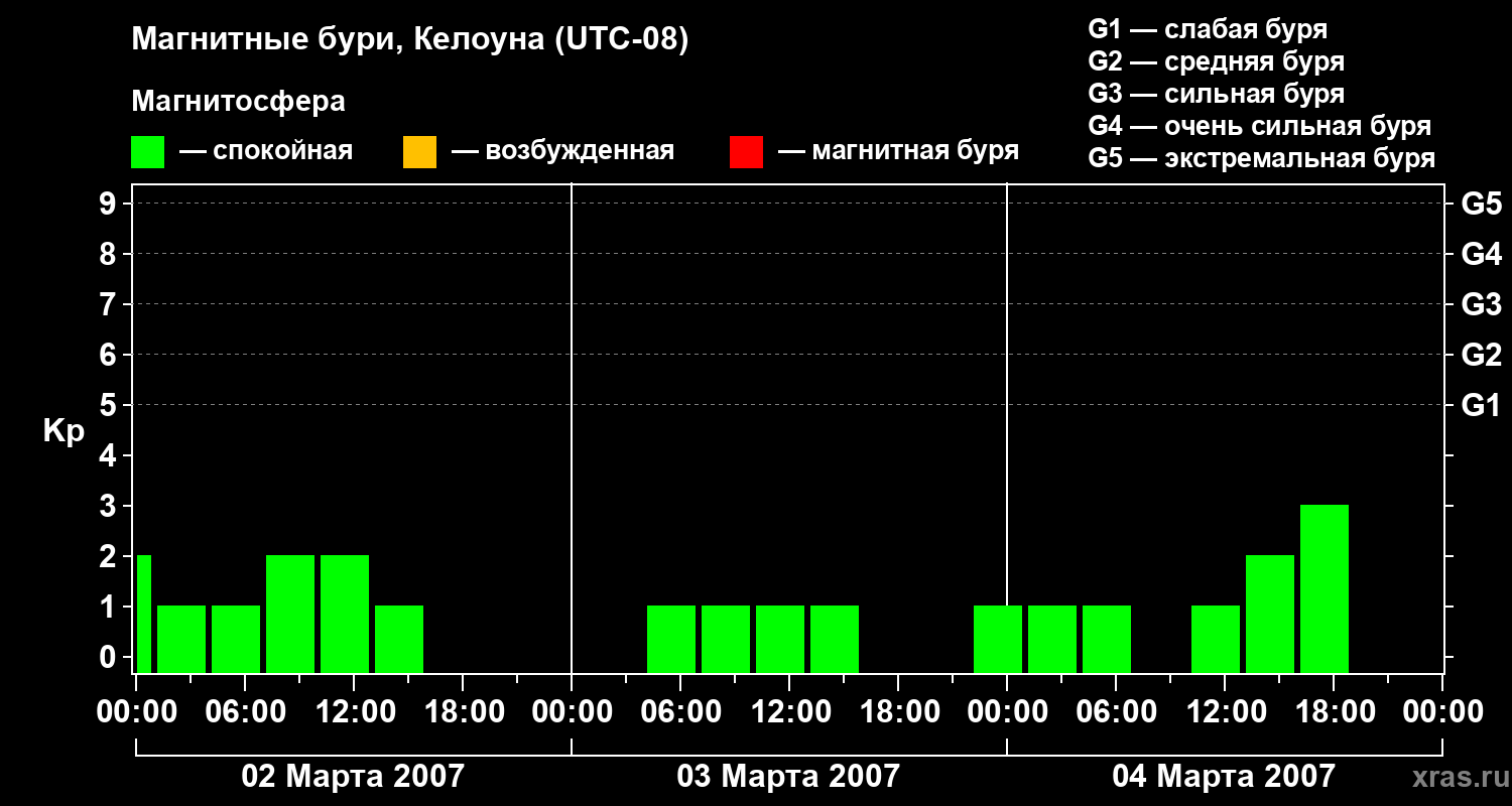 Магнитные бури в Келоуне — 4 марта 2007 года