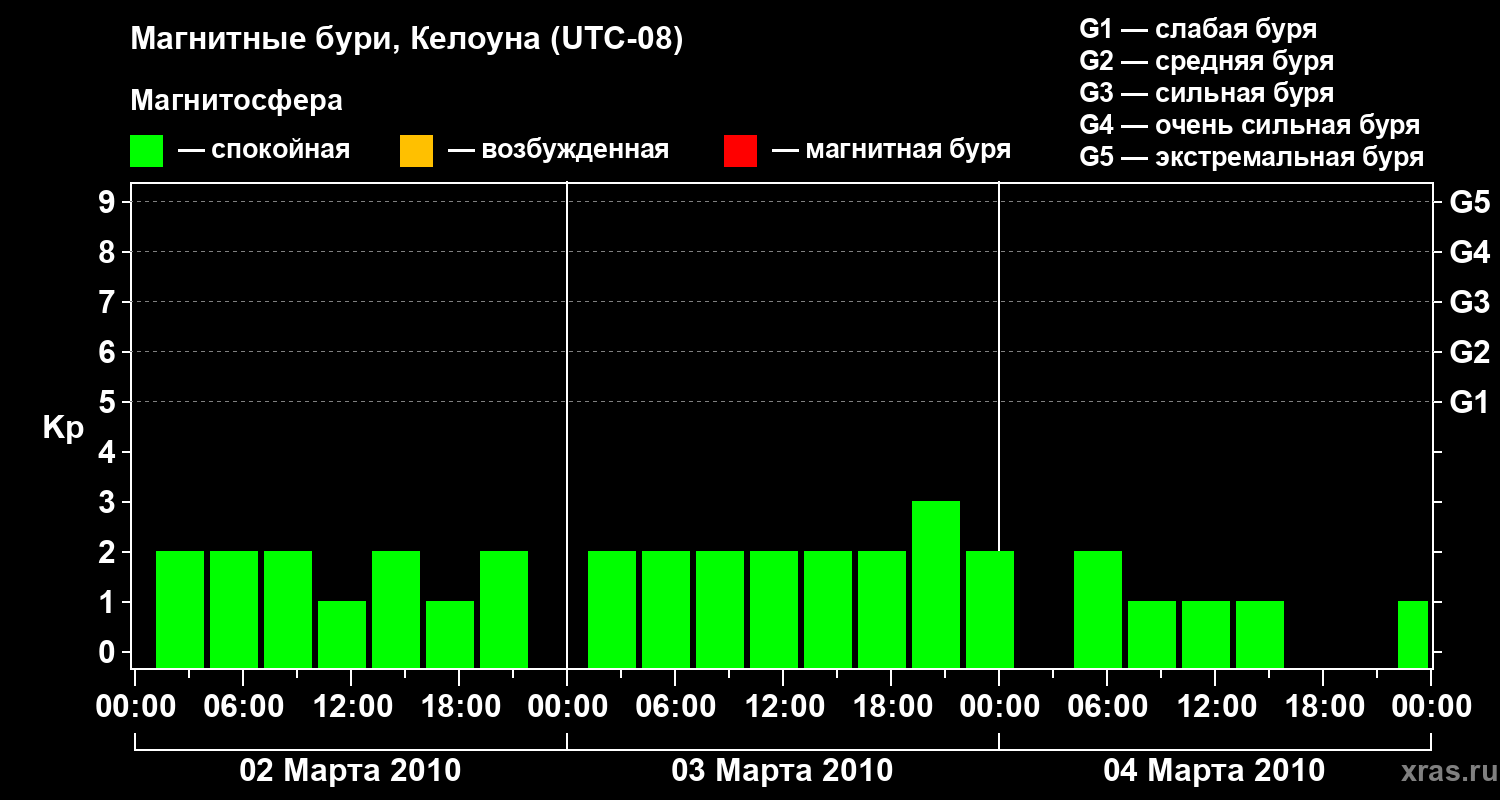 Магнитные бури в Келоуне — 4 марта 2010 года