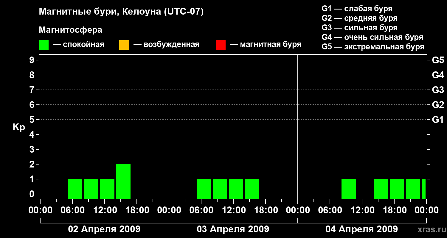 Магнитные бури в Келоуне — 4 апреля 2009 года