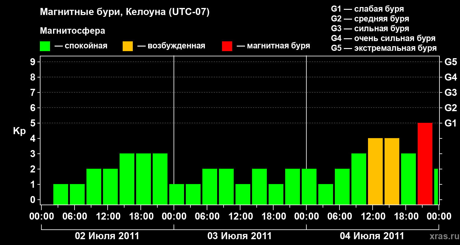 Магнитные бури в Келоуне — 4 июля 2011 года