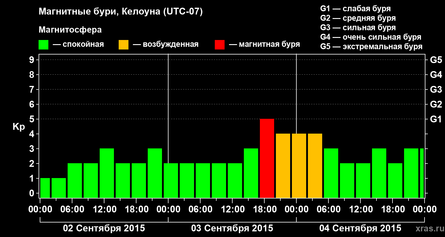 Магнитные бури в Келоуне 4 сентября 2015 года
