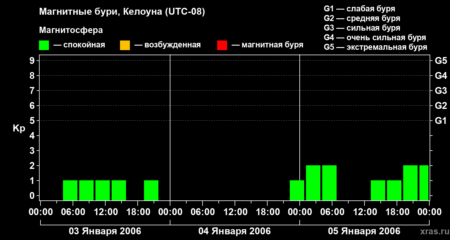 Изменения геомагнитного индекса Kp с 3 по 5 января 2006 года для средних широт