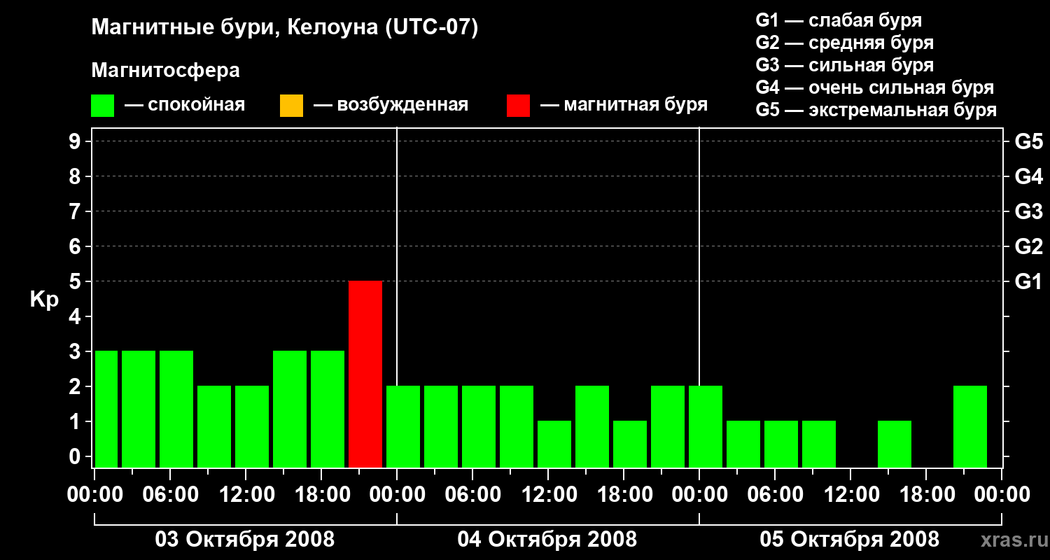Магнитные бури в Келоуне — 5 октября 2008 года