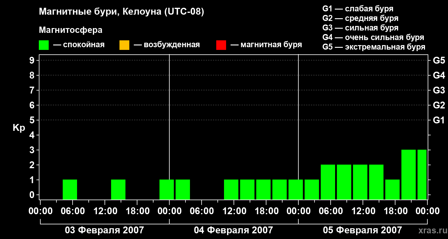 Магнитные бури в Келоуне — 5 февраля 2007 года