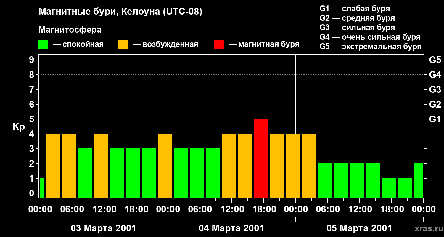 Магнитные бури в Келоуне — 5 марта 2001 года