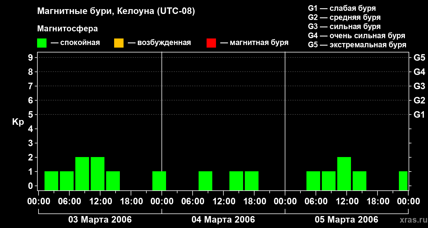 Магнитные бури в Келоуне — 5 марта 2006 года