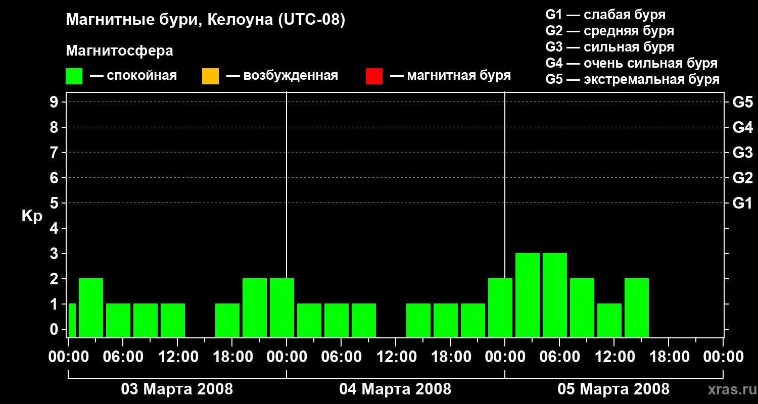 Магнитные бури в Келоуне — 5 марта 2008 года