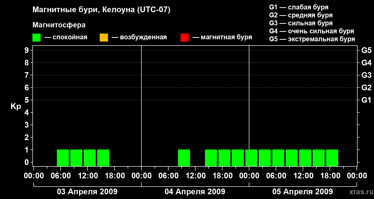 Магнитные бури в Келоуне — 5 апреля 2009 года