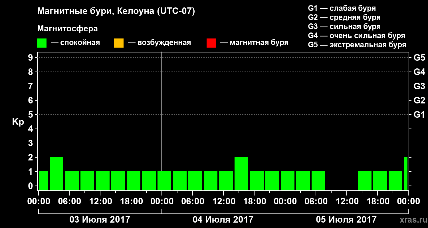 Магнитные бури в Келоуне 5 июля 2017 года