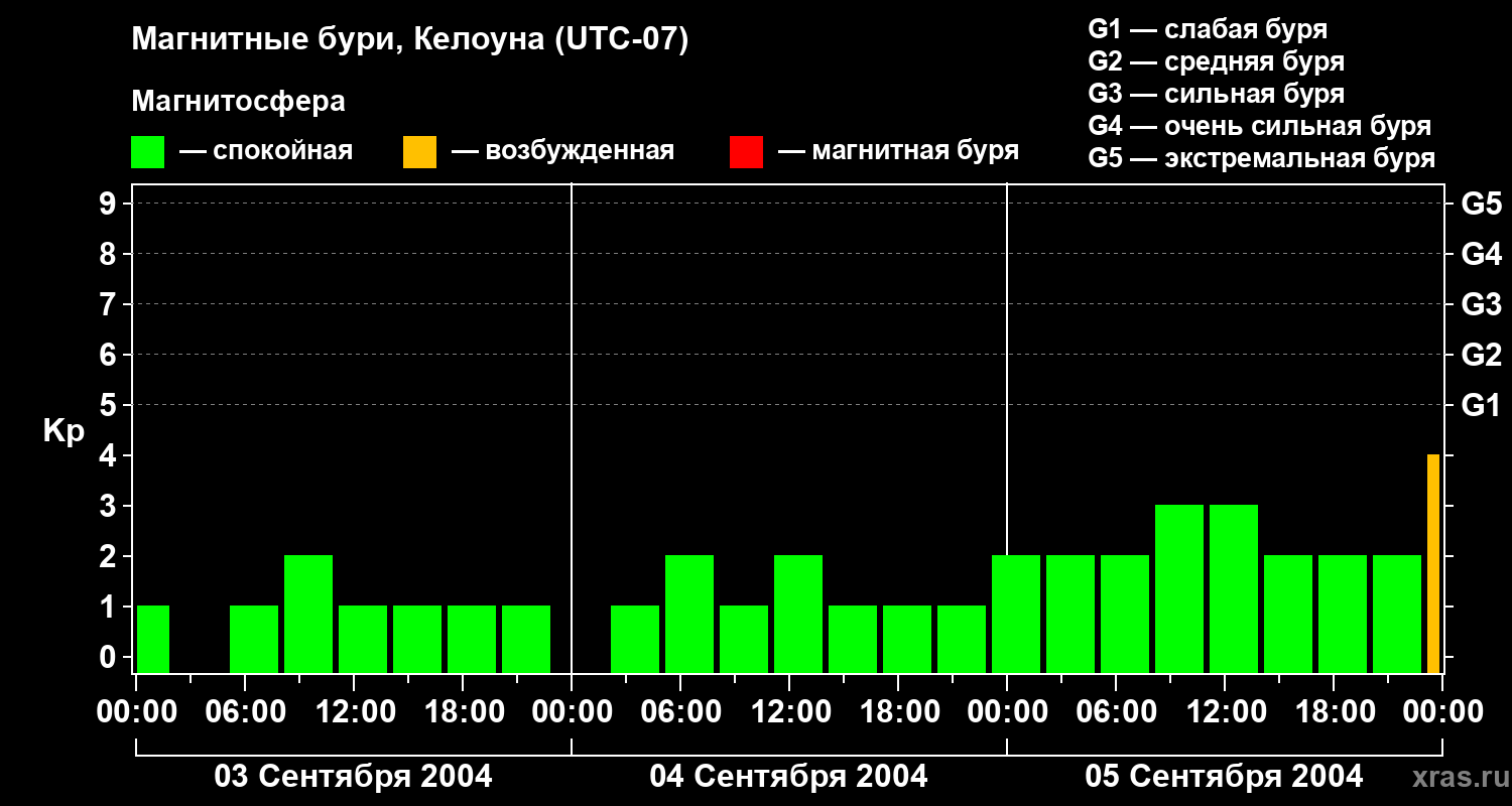Магнитные бури в Келоуне 5 сентября 2004 года