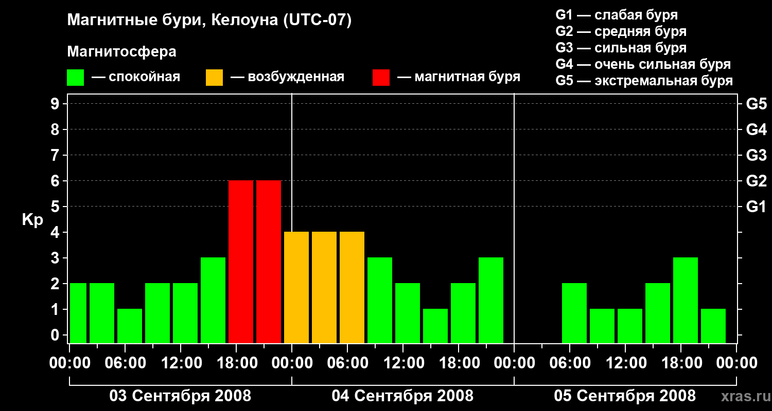 Магнитные бури в Келоуне — 5 сентября 2008 года