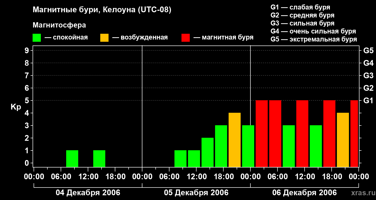 Магнитные бури в Келоуне — 6 декабря 2006 года
