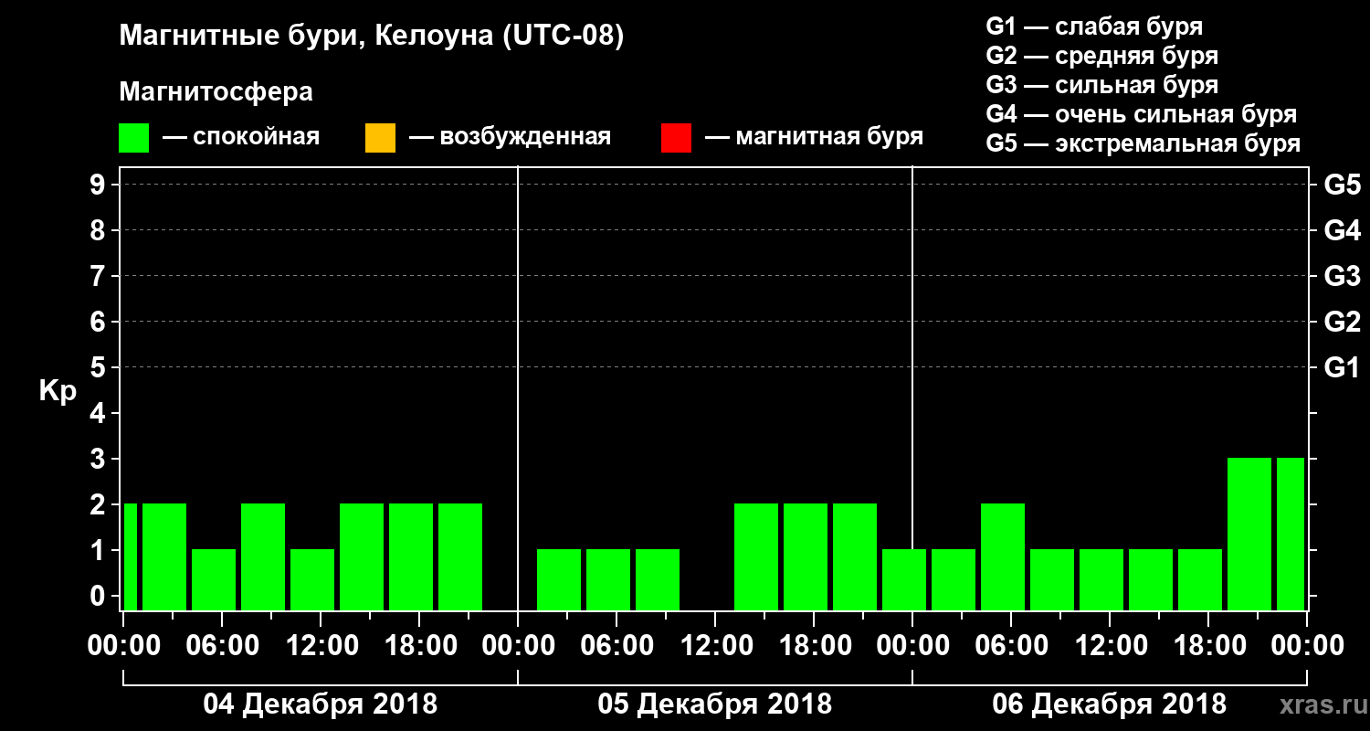 Магнитные бури в Келоуне — 6 декабря 2018 года