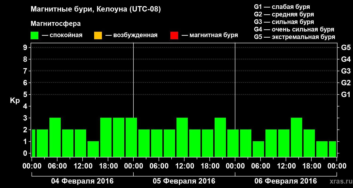 Магнитные бури в Келоуне 6 февраля 2016 года