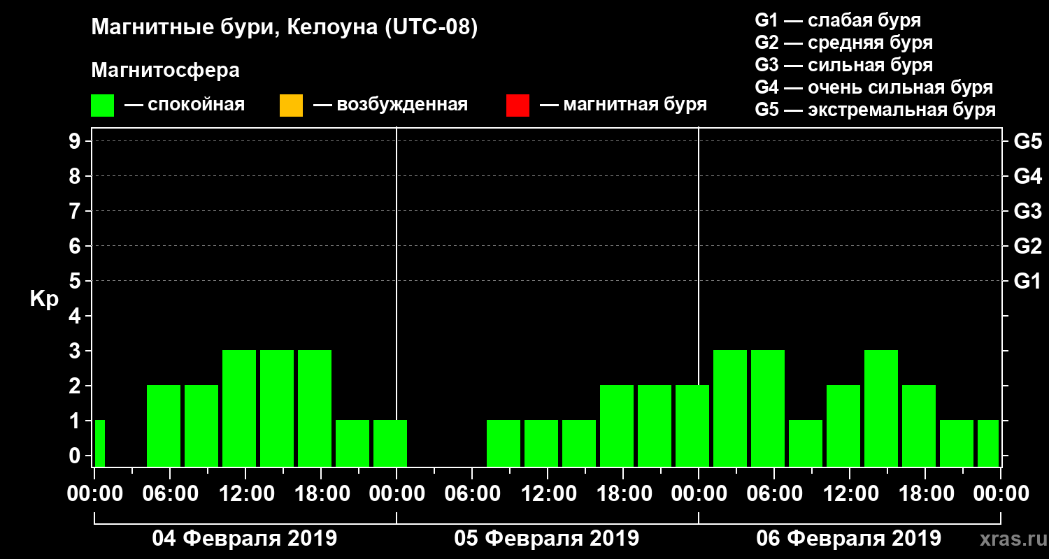Магнитные бури в Келоуне — 6 февраля 2019 года