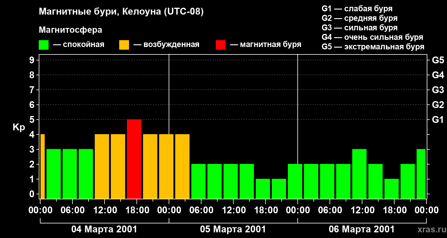 Магнитные бури в Келоуне — 6 марта 2001 года