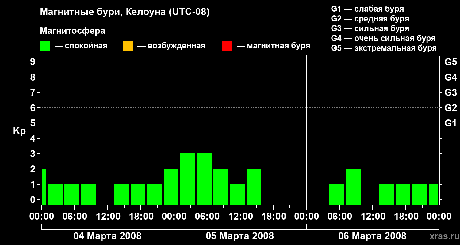 Магнитные бури в Келоуне — 6 марта 2008 года