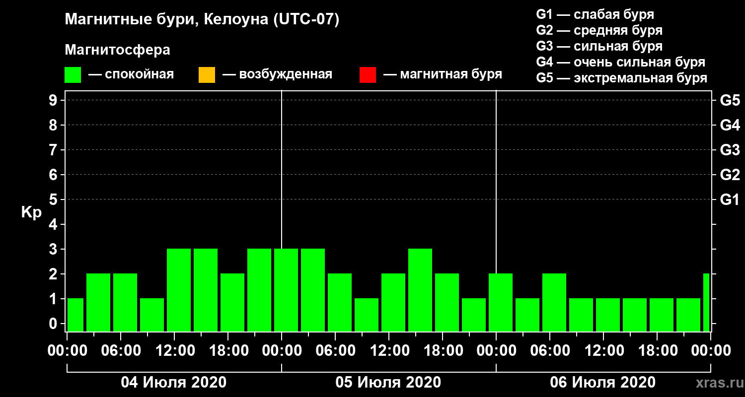 Магнитные бури в Келоуне — 6 июля 2020 года