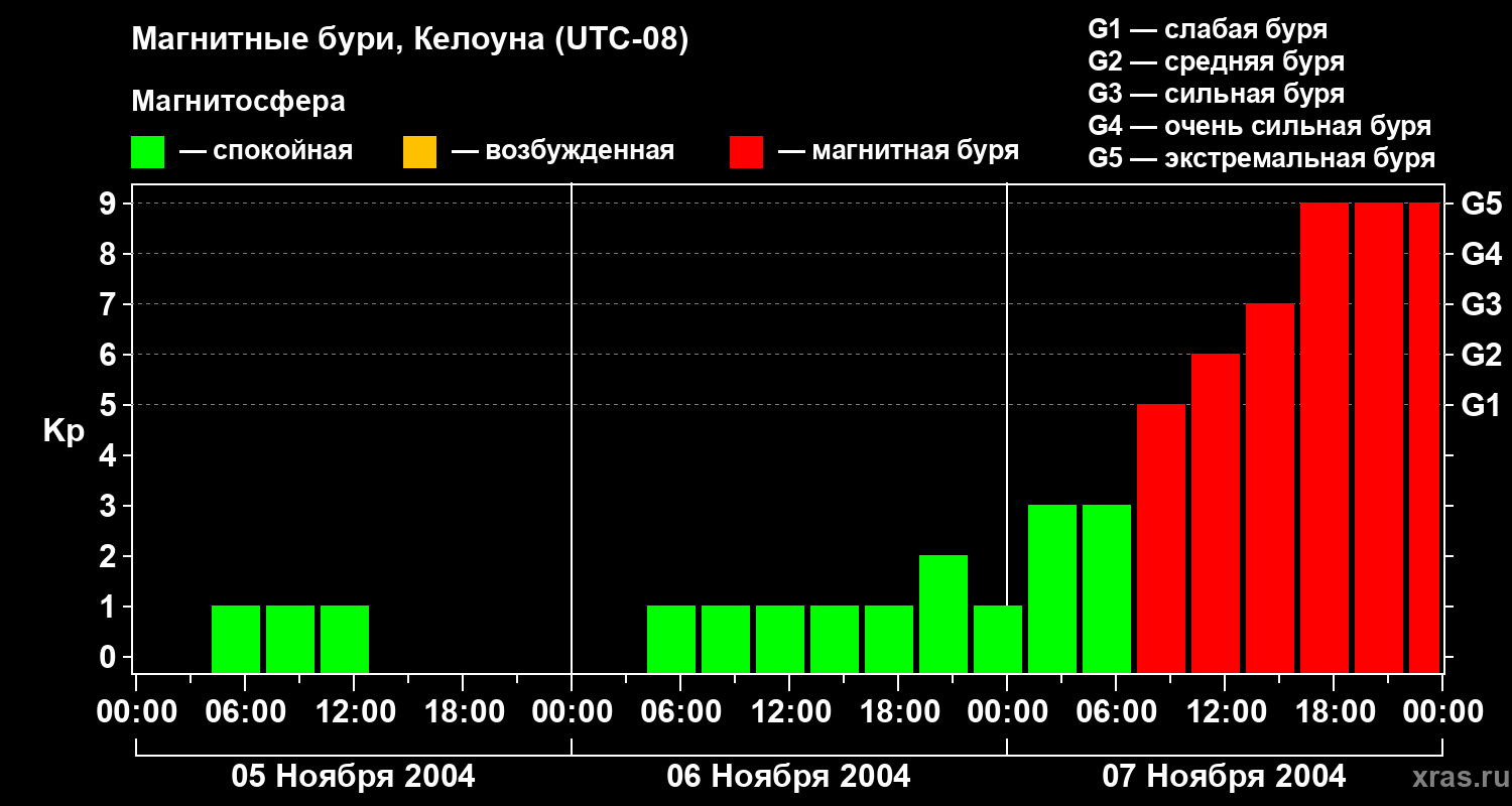 Магнитные бури в Келоуне 7 ноября 2004 года