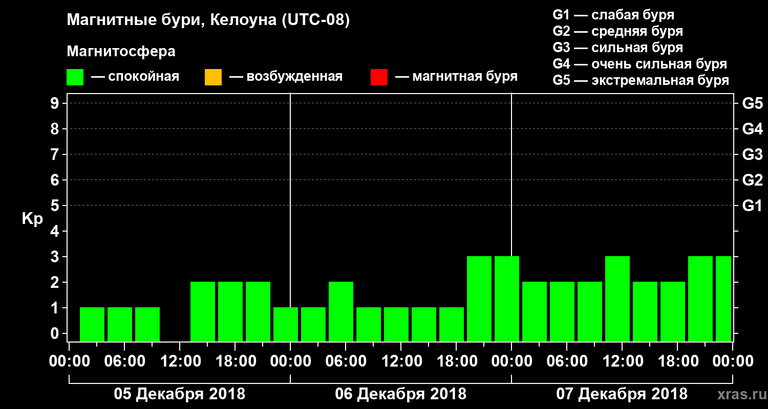 Магнитные бури в Келоуне 7 декабря 2018 года