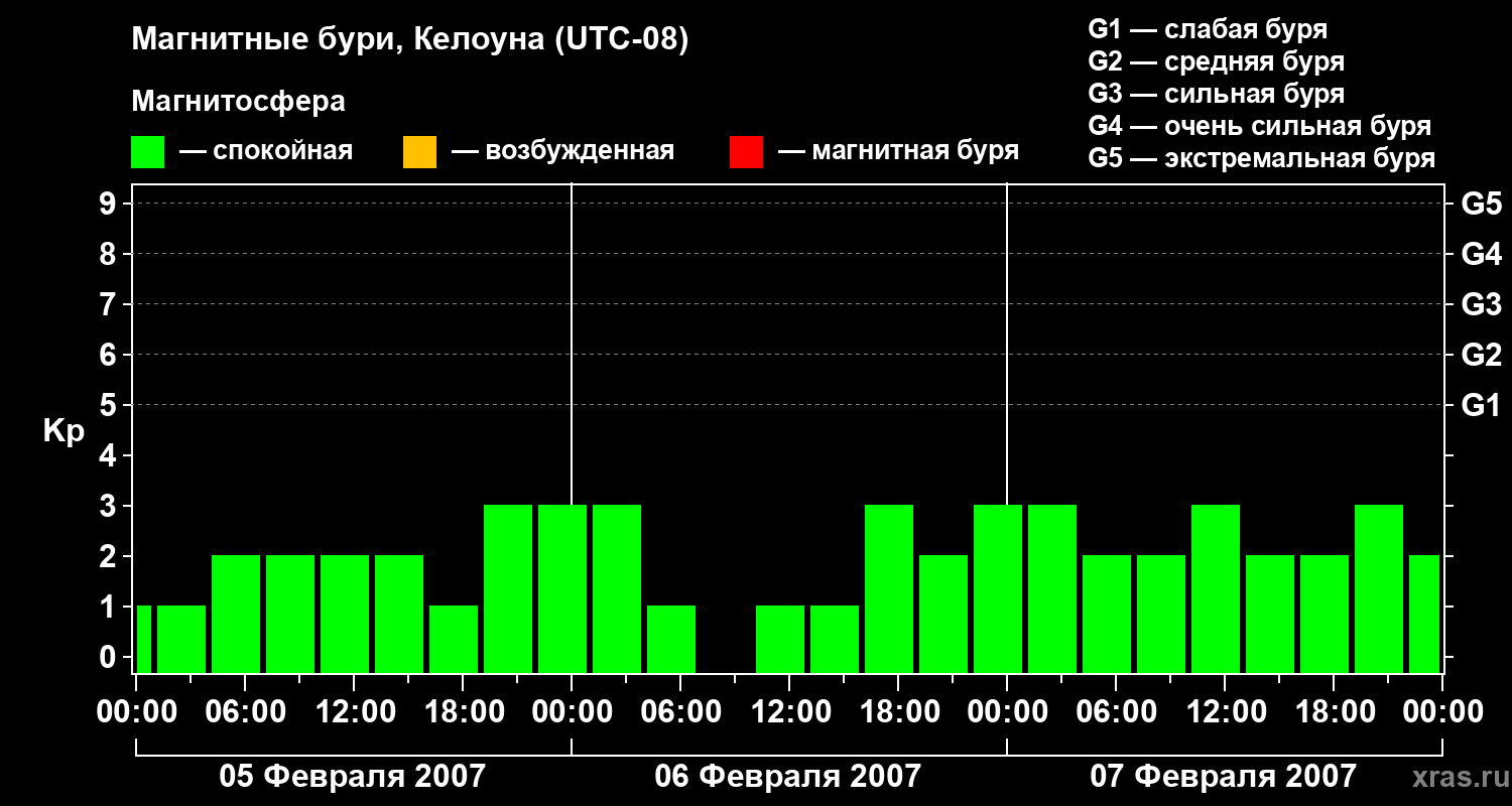 Магнитные бури в Келоуне — 7 февраля 2007 года
