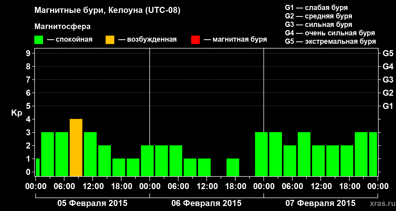Магнитные бури в Келоуне — 7 февраля 2015 года