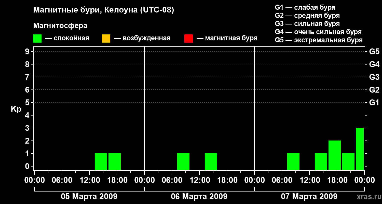 Магнитные бури в Келоуне — 7 марта 2009 года