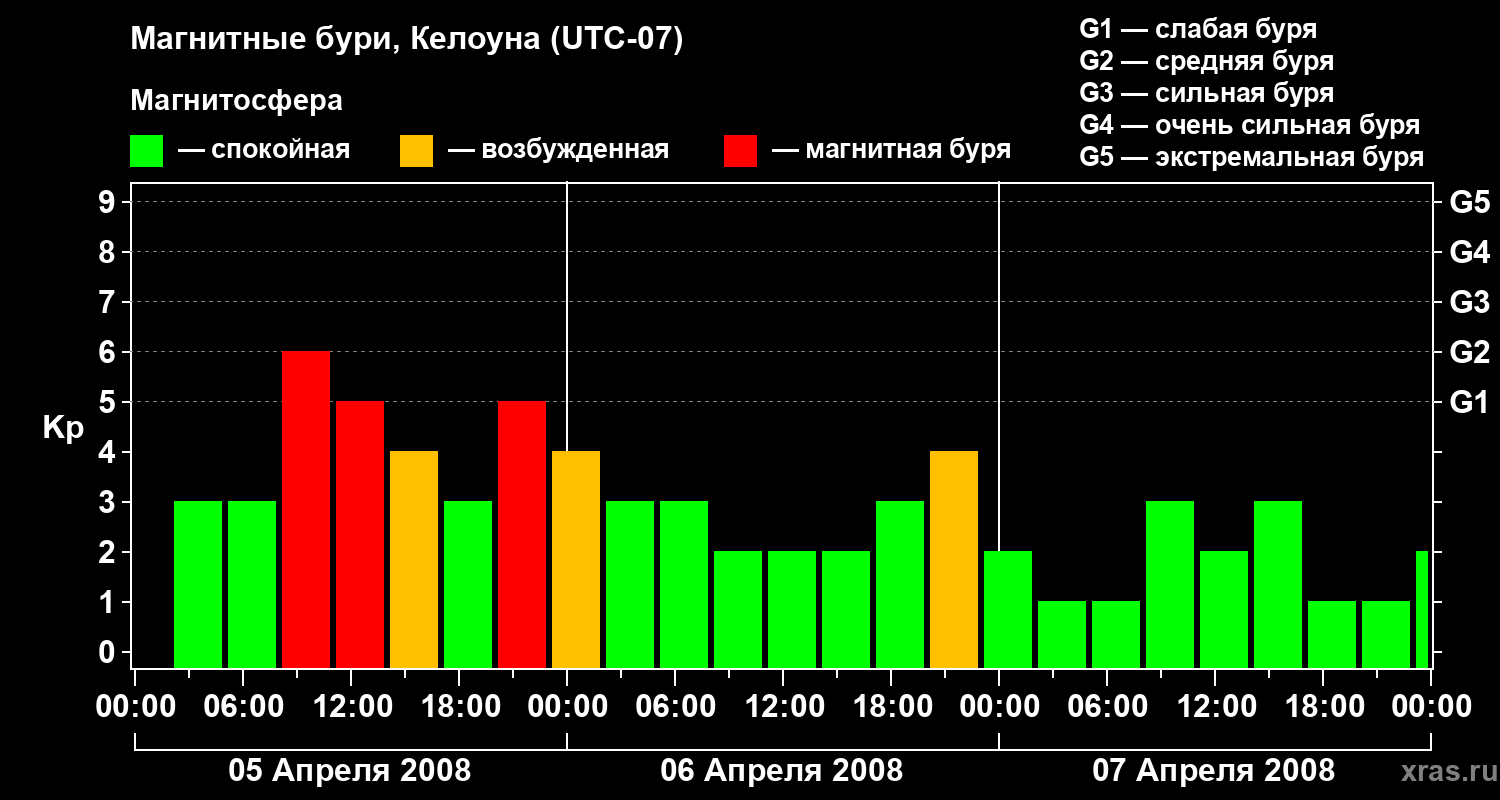 Магнитные бури в Келоуне — 7 апреля 2008 года