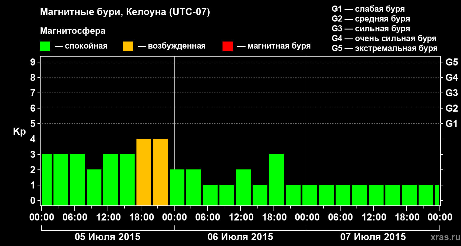 Магнитные бури в Келоуне — 7 июля 2015 года