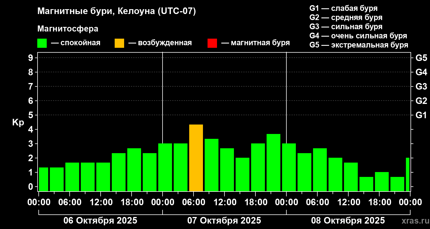 Магнитные бури в Келоуне — 8 октября 2025 года