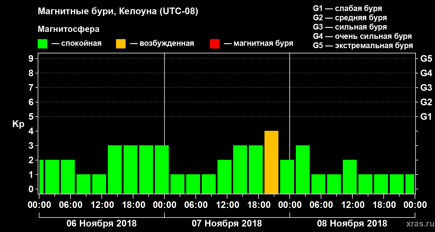 Магнитные бури в Келоуне 8 ноября 2018 года
